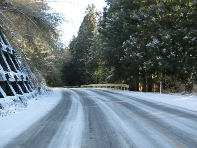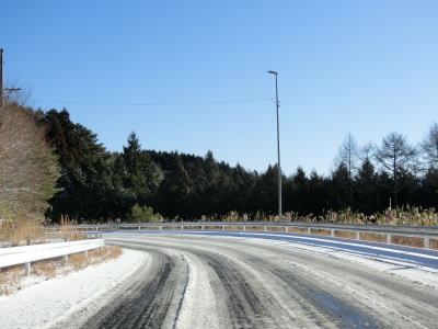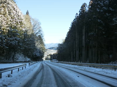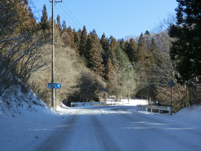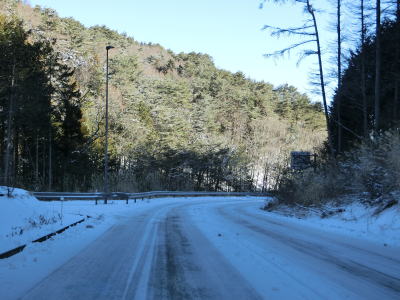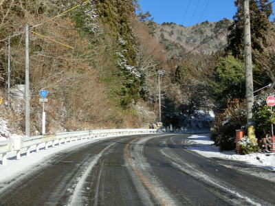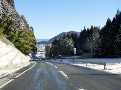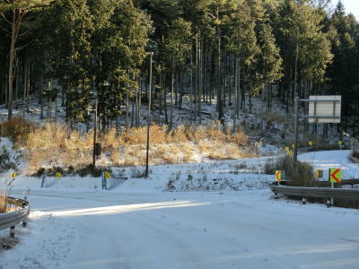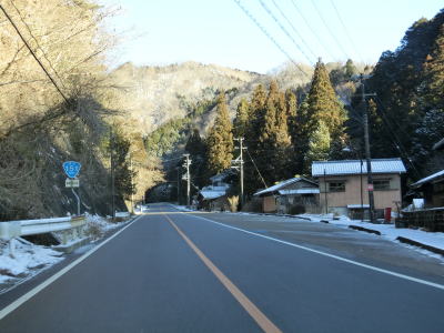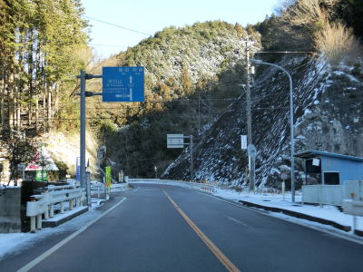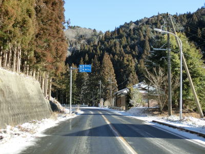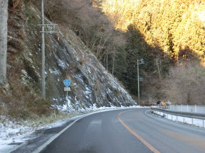 | 積雪のイメージのない愛知県にありながら標高が600m超と高いため路肩や法面等の雪が増え始める。さらに北の茶臼山高原にはスキー場も存在している。愛知r427交差点を通過してから程なくして坂場集落を通り抜ける。 | ||