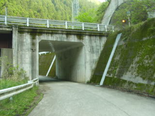 | R474をくぐると右にカーブしながら旧勾配を上る。道路脇には電気設備の入った建物が建っているが、おそらくは草木トンネルのものと思われる。建物を通り過ぎると勾配は落ち着くがそれ以外は行止り林道らしい様相を見せ始める。完全1.0車線幅で路面には小石が散乱しており舗装そのものもひび割れが目立つ。 | ||