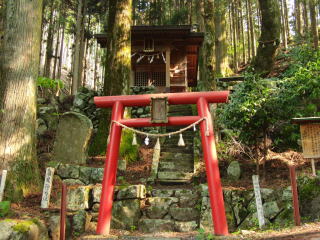 | 1.0車線幅の狭路を走っていると乗用車なら10台は停められそうなスペースと小さな建物が見える。駐車スペースの前には湧水の足神の水、建物の前には足神神社がある。駐車スペースの大きさからして休日であれば参拝もしくは水汲み客の車両が少なからず訪れるものと想像される。なお、足神の水の成分表には「自己責任にてご利用ください。」と記されている。 | ||