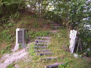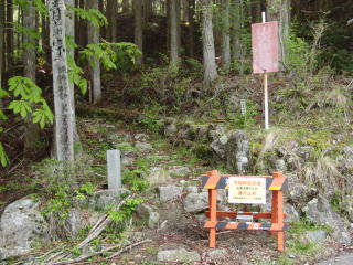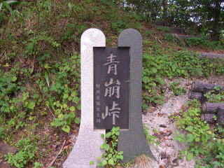 | 5分ほどで青崩峠に到着するが見通しの利かない峠で面白みは余りない。その割に石碑や由来を記した看板等が立てられており賑やかな印象を受ける。車が通行する道路ではないため県境標識等は設置されていない。 | ||