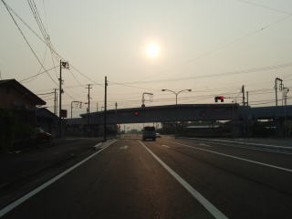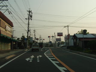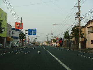 | 中沢町交差点以北は片側2車線状態を維持したまま北上を続ける。右に緩やかにカーブした後に馬込大橋を渡って浜松市東区に入り、次に左に緩やかにカーブしてから東名の高架下をくぐる。東名のインターは浜松ICと浜松西ICがあるが、どちらも浜松環状線であるr65と接続しており、R152が通っているのはちょうどその中間辺りである。 そのr65内野入口交差点から浜松市浜北区に入り、程なくして沿線の建物の数が一気に減り長閑なものへと変化する。早朝とあって交通量が少なく走りやすいと思ってしまうかもしれないが、意外に信号のタイミングが悪く道路状況は交通状況に反して快走できるとは言い難い。 |