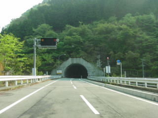 | インターを造ろうとしていたため上下で分離した道路が合流してから草木トンネルに入る。全長1311mの長大トンネルは内部で緩やかにS字にカーブしているが造りが高規格道路だけにハイスピードで走り抜けられる。トンネルを抜けて500m程進むと水窪ダムに至る市道か林道と交差する。この交差点までがR474に指定されていた区間であり、ここから北は兵越林道となる。 | ||