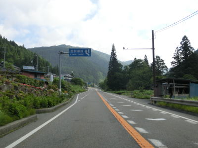 | 矢作川の右岸を走っていると国界橋を渡って長野県根羽村に入る。県境に相応しい名称の橋だが、矢作川に架かる橋ではなく支流の小さな沢に架かる短い橋である。長野県に入ってからも道路状況と周辺の風景に変化はなく矢作川に沿った2車線道路が続いている。左急カーブを曲がってすぐに日向集落に差し掛かるが、県境からの距離は短い。 | ||