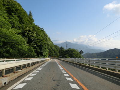 | 第2三階橋を渡った直後に初沢トンネルをくぐり、初沢橋を渡って大野トンネルをくぐる。大野トンネルを出ると大野橋を渡るが、その手前には大野集落に至る村道が交差している。大野集落を通り抜けている道路が旧道と思われる。 | ||
