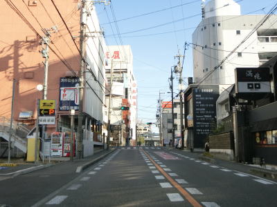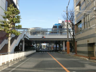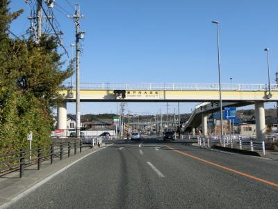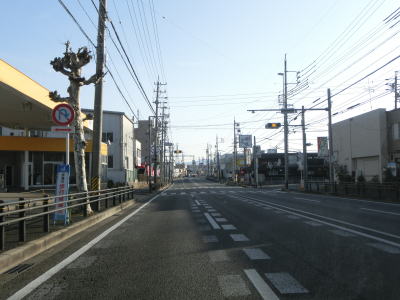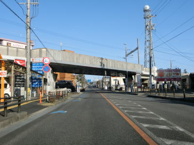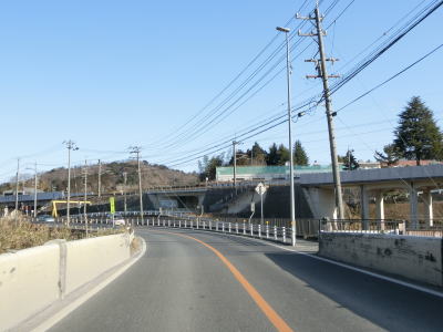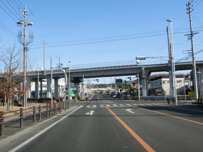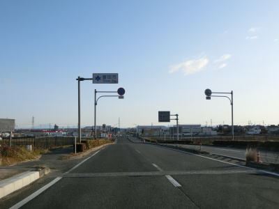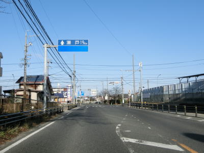 | 愛知環状鉄道のガードからはごく緩やかな上り勾配となっており、程なくして市道との栄町3交差点を左折する。右折して市道を東に進むとR419やR153(R420重複)に行く事ができる。栄町3交差点の直後に市道との信号機のない交差点を通過し、右にカーブして緩やかな勾配を上る。 | ||