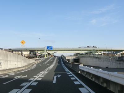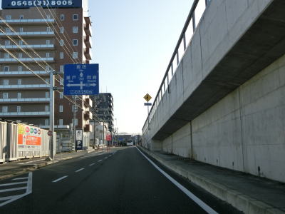 | 堤町五月池南交差点の手前で右側車線が減少し、以降は片側1車線道路になる。車線が減ってからは緩やかな勾配を上り、対面2車線道路でトヨタ自動車の堤工場の間を走り抜ける。高架橋区間となっているためトヨタ自動車の敷地内に入る事は不可能である。 | ||