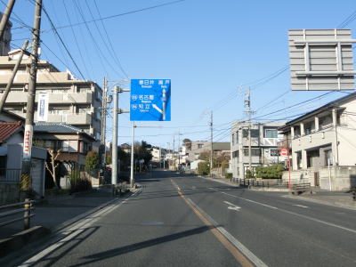 | 住宅地の出入口の萩殿町3交差点を過ぎると沿線の家屋が増える。狭い歩道付きの2車線道路を下っていると3.8m超の高さ制限緩和区間の終点を通過する。反対側車線にも同じ形状の標識が立っているが、こちらはなぜか20t超重量制限区間の起点となっており、しかも高さ制限緩和区間のピクトグラムがシールで隠されている。 長い勾配を下り続けていると右カーブを曲がった先でR248・R363・愛知r33東本町交差点となり、左折して名古屋方面に進む。この交差点でR248が多治見方面に分岐するが、R248に重複していたR363との重複区間が始まる。なお、路線バスとマイクロバスを除く大型貨物車両はR155(R248重複)の豊田方面からの左折はできないが、交差点以西の区間が大型貨物車両通行禁止の標識はないので通行そのものはできるのかもしれない。 |