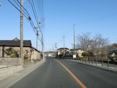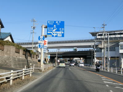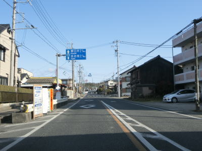| 路側帯が狭く大型車同士の離合が困難は幅の橋の辺りで右から愛知環状鉄道が接近してくる。その後は伊保川と愛知環状鉄道の間を北上する。八草駅に近付いてくると沿線の建物が増える。 | ||