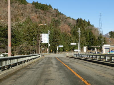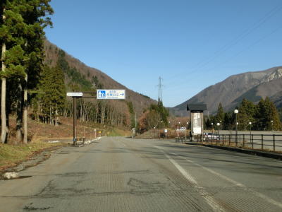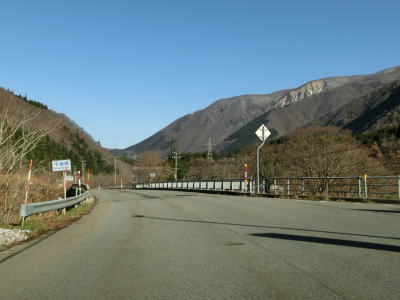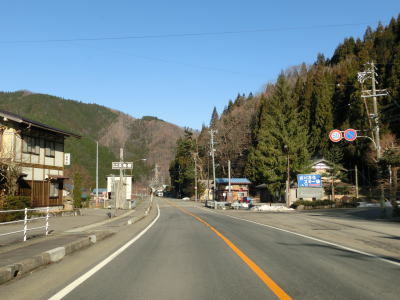 | 岐阜r451交差点からは緩やかなカーブの2車線快走路となっており、程なくして道の駅「飛騨白川」を通過する。道の駅の周辺には集落がないように見えるが、庄川に近い低い場所に集落が形成されて人里離れた場所という訳ではない。平瀬橋の手前で交差している道路が集落を通り抜けている市道である。 | ||