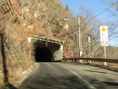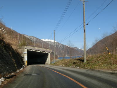 | 岩瀬2号トンネルを出て少し進むと次の岩瀬3号トンネルをくぐる。3号トンネルも1号、2号トンネルを同じような形状である。その後中野集落を通り抜けるがその中にドライブインみぼろ湖がある。中野集落を過ぎるとしばらく集落は存在せず、みぼろ湖の湖畔を北上する。みぼろ湖に多くの沢が流入しており必然的に多くの橋を渡る事になるが、どの橋の前後にも勾配があり橋が凹部にある形である。 | ||