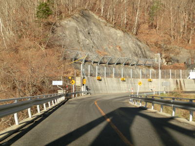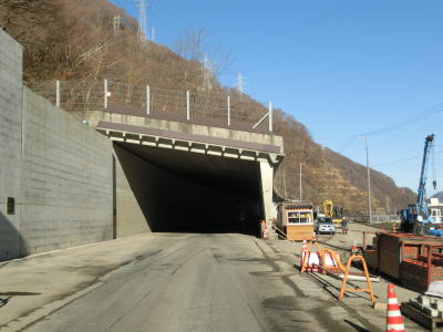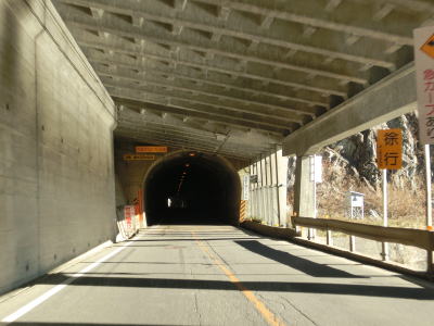 | 福島2洞門を出ると雪崩防止対策と思われる工事のため片側交互通行規制が敷かれていた。福島3洞門と福島4洞門の間も工事のため片側交互通行規制が敷かれていた。これら2ヶ所の工事の規制区間は独立しており、交互通行用の仮設信号機も4ヶ所に置かれていた。 | ||