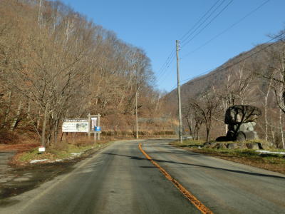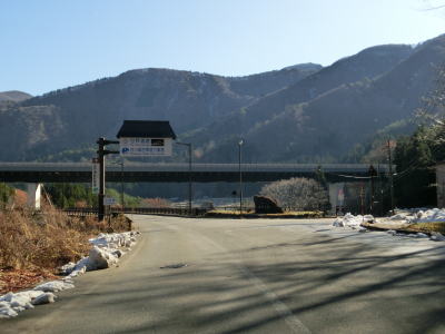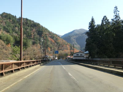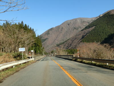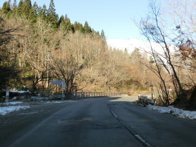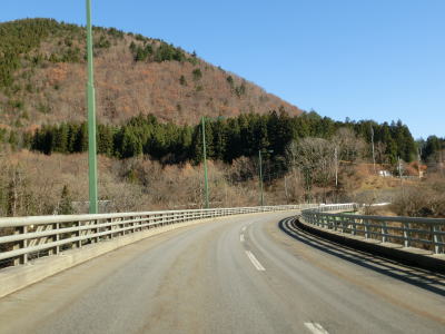 | 橋を渡るたびにアップダウンを繰り返す2車線道路を走っていると宮谷橋を渡り、荘川桜の前を通る。近くには場所を考えると広い駐車場が造られておりトイレも設置されている。桜の開花時期には相当混雑するものと思われる。 | ||