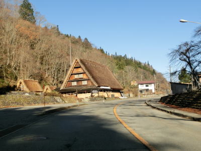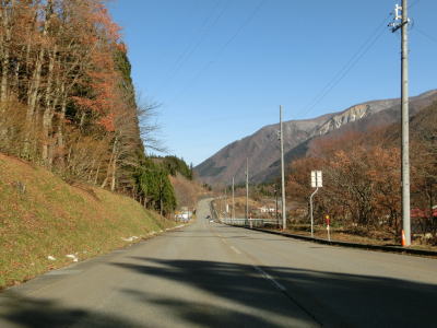 | 御母衣ダムから程なくして牧集落を通り抜ける。集落からは勾配が緩やかになり、その後はアップダウンを繰り返すようになる。旧遠山家住宅の前を通り過ぎるが、その造りは合掌造りであり、白川郷に近付いた事を感じずにはいられない。庄川の支流である大白川に架かる大白川橋を渡った先で岐阜r451交差点を右にカーブしながら通過する。r451の行きつく先は大白川ダムであり、白山への登山道の入口である。 | ||