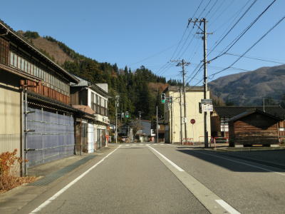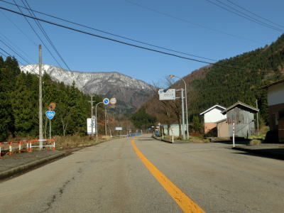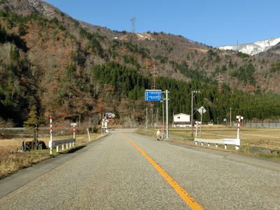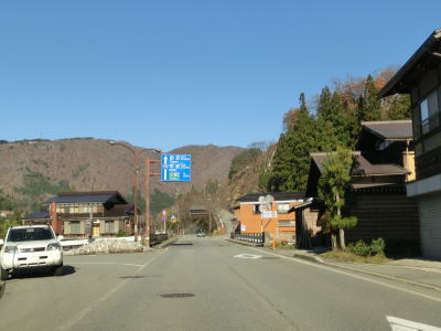 | 上梨トンネルを出ると引き続き庄川の左岸を走り、程なくして下梨集落に差し掛かり、その中でR304下梨交差点を通過する。この交差点はR304の終点であり、R304を少し走ると世界遺産の相倉合掌集落に行く事ができる。 | ||
