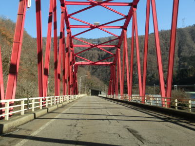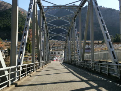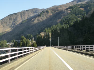 | 水田の間を走っていると旧道らしき道路との交差点を通過した後に楮橋を渡る。前述のとおり、県境を越えている橋ではないが飛越七橋のひとつである。その後は庄川の右岸を走っていると赤尾ダムの横を通過する。 | ||
