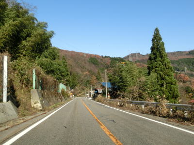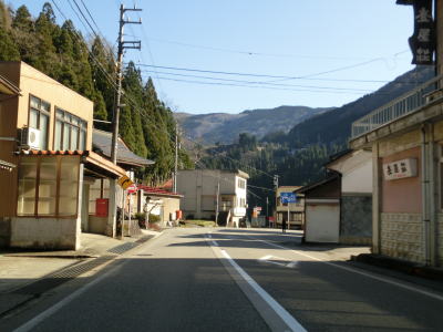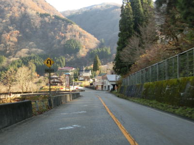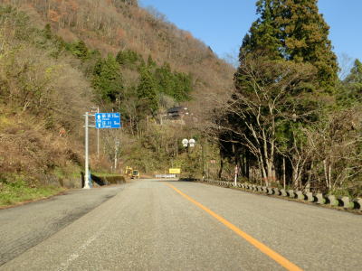 | 道の駅からは沿線の集落が途切れた状態となり、カーブの多い2車線道路を走る。大崩島集落で左ヘアピンカーブを曲がり、庄川の右岸を一時的に上流に向かって走っていると右直角カーブを曲がって大渡橋を渡る。渡り終えると右カーブを曲がり、庄川の左岸を下流に向かって走る。 | ||