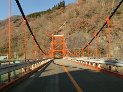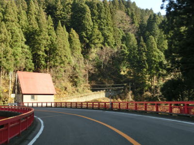 | R304下梨交差点を過ぎてすぐに右直角カーブを曲がった後に平橋を渡り、右岸でも右直角カーブを曲がる。橋の前後で右カーブを2ヶ所通過するという事は庄川の右岸を南へ、つまり上流に向かうルートになる。とは言っても約700m進んだ所で左ヘアピンカーブで進行方角を北に戻す。平橋の東詰からヘアピンカーブの先までは上り勾配となっている。 | ||