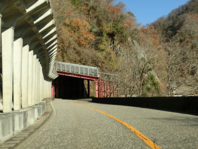| 300.金屋トンネル | 301.橋の下にあるのは小牧発電所の送水管 | 302.閉鎖用ゲートの脇を通過 |
