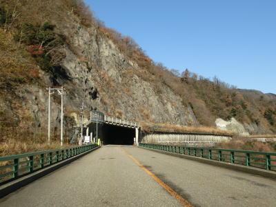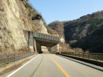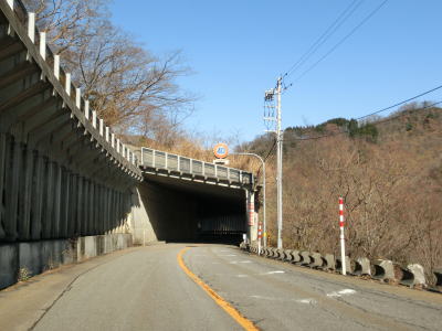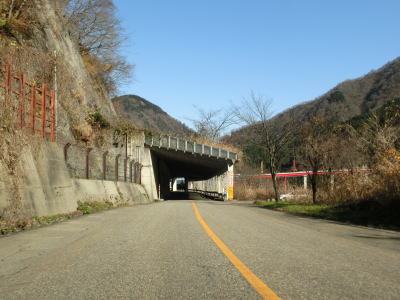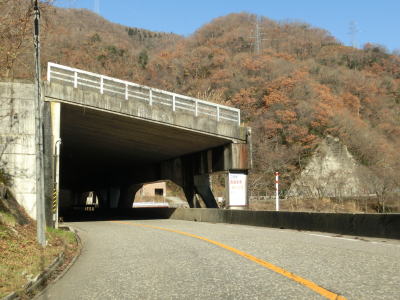 | 大橋平1スノーシェッドを出てすぐに短い小牧2スノーシェッドをくぐり、次いで長い小牧1スノーシェッドをくぐる。小牧1スノーシェッドと小牧トンネルの間にはドライブイン小牧があり、小牧ダム湖の遊覧船の発着場がある。なお、大牧トンネルの対岸にある大牧温泉へは陸路が繋がっていないためここから船に乗って行かなければならない。小牧トンネルを出て小牧ダムの真横で名称不明のスノーシェッドをくぐる。このシェッドがR156で最北のシェッドである。 | ||
