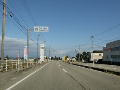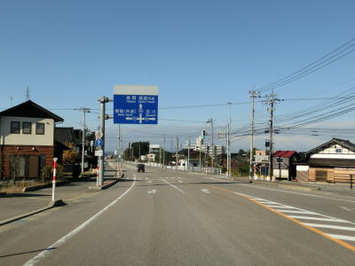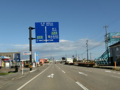| 交通量の多い片側2車線道路を北上していると富山r72油田交差点を通過する。緩やかなカーブを描く平坦な道路を走っていると高岡市に入る。高岡市に入ってからも道路状況や周辺の風景に変化はなく、JR城端線の西を淡々と走る。沿線の建物が増えてきた所で富山r353戸出町4交差点を通過し、そのすぐ北で富山r9戸出狼交差点を通過する。さらにすぐ北では富山r252・r253伊勢領交差点を通過する。 | ||
