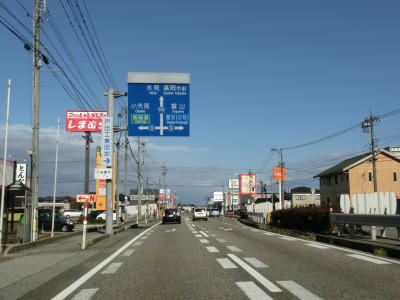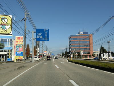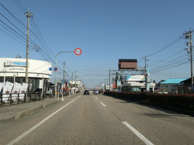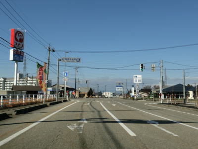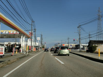| 320.片側2車線道路が続く | 321.高岡市に入る | 322.富山r9戸出狼交差点 |