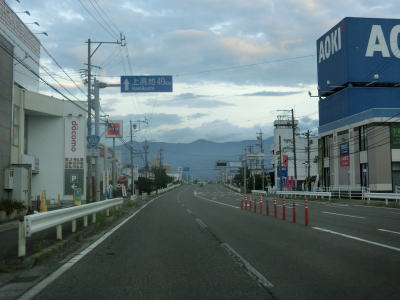 | 松本電鉄と隣接並走状態になって少し走ると新島々駅の前を通過する。松本電鉄の終着駅であり、駅前はバスターミナルとなっており多くのバスが停まっていた。新島々駅を過ぎてからも2車線道路が続いているが、緩やかながら上り勾配が始まる。R158の他に県道にも異常気象時通行規制区間があり、標識によって事前に告知されている。それによるとR158湯川渡〜安房峠、長野r84国民休暇村〜乗鞍山頂、長野r24中の湯から上高地、長野r26寄合渡〜境峠、長野r39川浦〜野麦峠の5区間は連続雨量80mm超、時間雨量20mm超、15分間雨量10mm超で通行止になる。長野r300湯川渡〜白骨温泉は連続雨量60mm超、時間雨量15mm超、15分間雨量8mm超で通行止になる。なお、r24とr84の一部区間は観光保護のためのマイカー通行規制が敷かれているため、雨量によらず一般車両は通行できない。 | ||