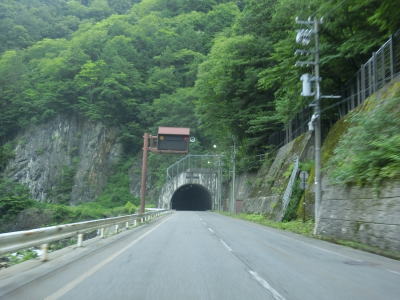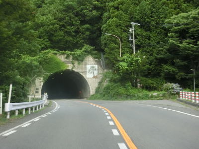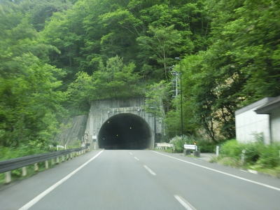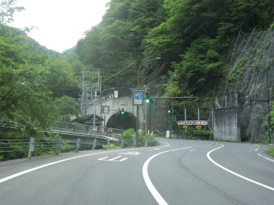 | 大日川第二隧道を出た後に奈川渡バイパスの大白川大橋をくぐり、大白川3号橋の前後で右ヘアピンカーブを曲がって大白川大橋の下を再びくぐる。左直角カーブの先で入り山隧道をくぐるが、このトンネルの中に長野r26との交差点がある。Y字形状の交差点を道なりに右へ進む方が国道である。このトンネルも高さと幅の制限は設けられていないが、大型車両同士の離合は難しい。奈川渡バイパスはこれら断面積の小さいトンネルを回避できるため、大型車とりわけ大型バスの通行が大幅に容易になると思われる。奈川渡バイパスの資料を見ると入山隧道と新入山トンネルの西側坑口が同じ場所にある事から、入山隧道を拡幅するのかもしれない。そうであればトンネル内の分岐はバイパス供用後も存続するかもしれない。 | ||