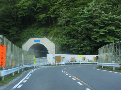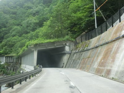 | やや急な右カーブの正面に建設中のトンネルが確認できるが、これは奈川渡バイパスの大白川トンネルである。前述の狸平バイパスよりも早い2014年から工事が始まったが工法の見直しにより完成時期が2026年となっている。 バイパス接続予定地点を過ぎてすぐに小雪なぎ隧道とずみの隧道、大日川第一隧道、大日川第二隧道を相次いでくぐる。いずれも制限高や制限幅は設けられていないが、断面積が小さいため大型車同士の離合は難しい。また、大日川第一隧道と第二隧道の間にはロックシェッドがあるためひとつのトンネルであるかのように見える。 |