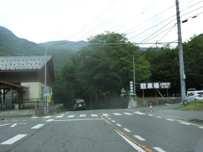| 沢渡集落を通り過ぎて先にも観光客向けの駐車場が存在している。最奥の駐車場は茶嵐駐車場であり、その手前に長野r300との交差点がある。r300は白骨温泉とR158を結ぶ県道で、以前は冬季閉鎖されていたが改良されたため通年通行が可能となっている。ただし、狭路区間も残っており山岳部とあって、連続雨量60mm超、時間雨量15mm超、15分間雨量8mm超で通行止である。 | ||