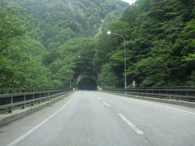 | 梓川の谷筋のカーブの多い状態を走っていると宮沢洞門、明ヶ平下洞門、明ヶ平洞門を次々に通過する。このうち宮沢洞門はその上に水路(?)が設置されており、多雨時は水が流れているものと思われる。 | ||