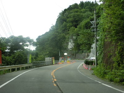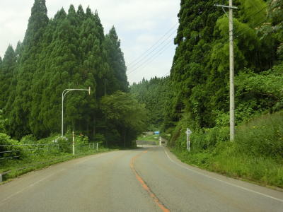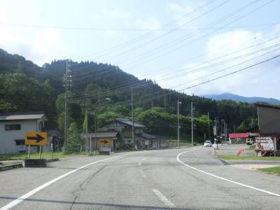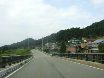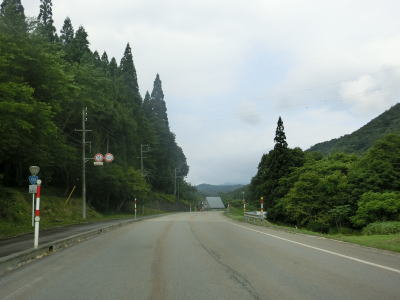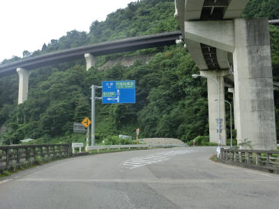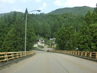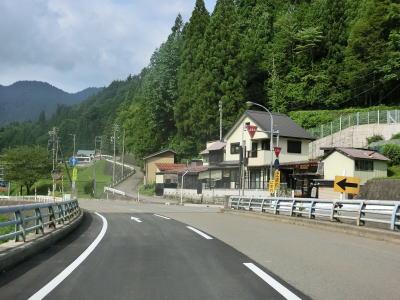 | R257・R472三尾河交差点から100m程先に1.0車線幅の道路との交差しているが、ウオッちずではその道路も国道として表記している。三尾河交差点にすら案内標識がなかったので当然ながらこちらにも案内標識は設置されていない。三尾河集落の南端部でやや急なカーブが連続しているが、走りにくく感じる程ではない。黒谷集落に入るとE41東海北陸道の黒谷橋をくぐる。 | ||