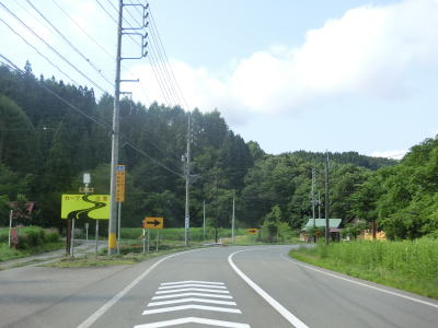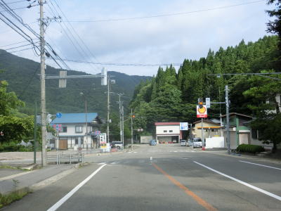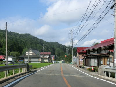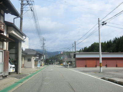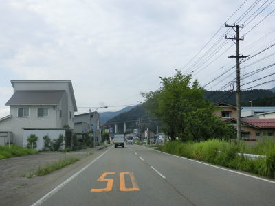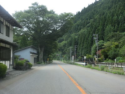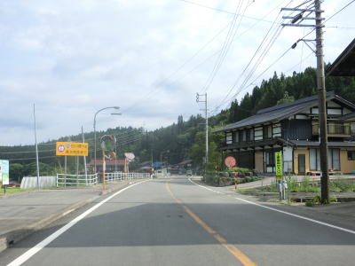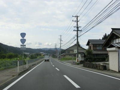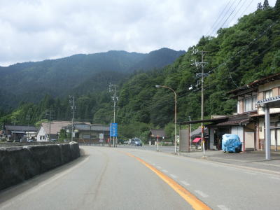 | 荘川町新渕集落を走っていると左側の歩道がなくなるが300m強先で復活する。その後は荘川町中畑集落を通り抜けており、緩やかながら多少のアップダウンがある。交通量はこれまでと同様に少ない。 | ||