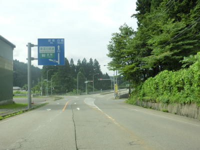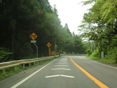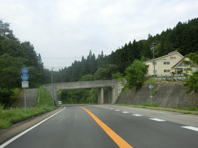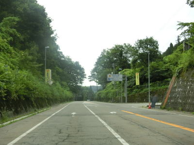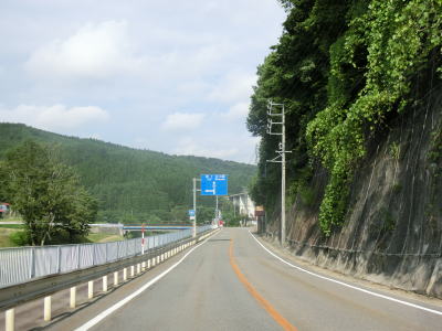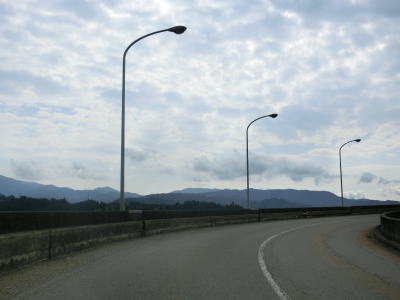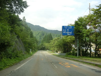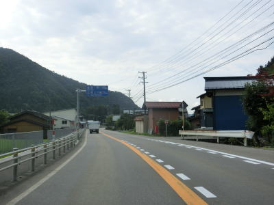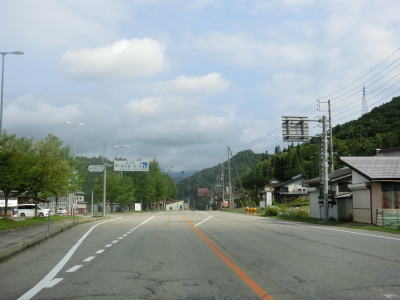 | 高鷲IC北交差点を過ぎてすぐに穴洞橋を渡り、緩やかなカーブを繰り返しながら緩やかな勾配を下って行く。既に早朝と言える時間ではないが交通量は非常に少ない。旧高鷲町の中心部を通っている岐阜r452との正ヶ洞交差点を通過してやや急な勾配を下っていると岐阜r316交差点を通過する。 | ||