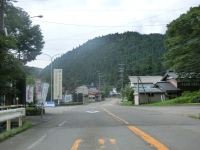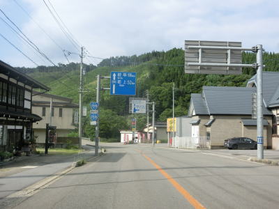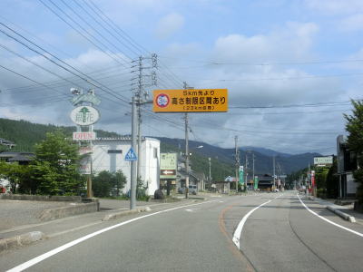 | カーブの多い2車線道路を御手洗川に沿って走っていると荘川ゴルフ場の前を通った後に市境を越えて郡上市に入る。高山市は平成の大合併によって香川県や大阪府よりも広くなっており、安房峠からの距離は95kmに達する。 郡上市に入ってすぐに集落に入るが、ひるがの高原という観光地のためペンションや旅館が多くスキー場や物産店などもあり、ただの山間部の集落ではない。行楽シーズン、特に紅葉期は混雑するものと思われる。 |
