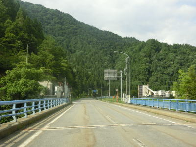 | E41東海北陸道の黒谷橋をくぐってすぐに黒谷橋を渡る。庄川の右岸を快走しているとE41東海北陸道の惣則橋の下で岐阜r452交差点を通過する。その後も庄川沿いの2車線道路を走り続ける。 | ||