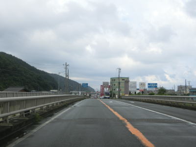 | 湯岡橋東詰交差点を左折するとR27との重複区間となる。西向き1車線+東向き2車線(但し1本は湯岡橋東詰交差点の右折車線)の湯岡橋を渡り終えた直後の湯岡交差点を右折する事でR27から分岐する。重複区間の距離は約300mと非常に短い。 | ||