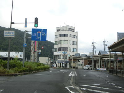 | 112.福井r14小浜駅前交差点を右折 | 113.右折するのは駅前ロータリーの出口 | |