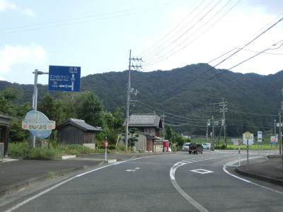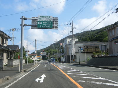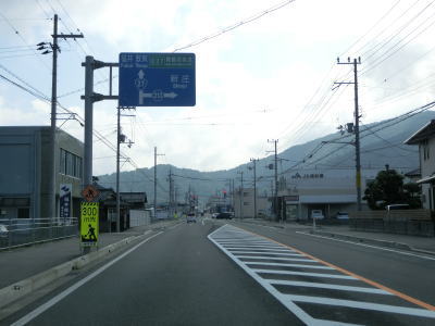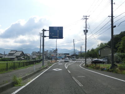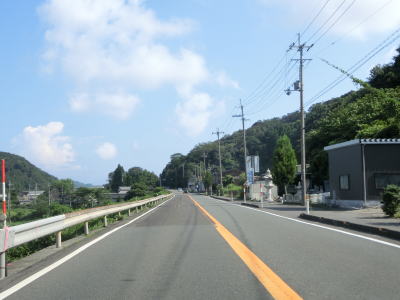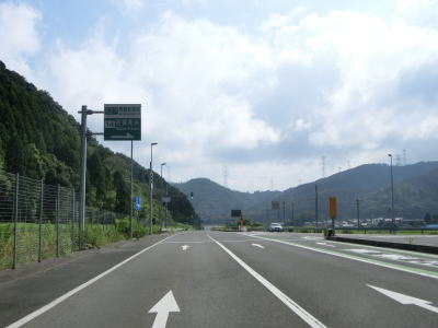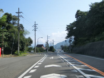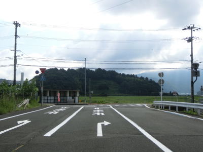 | 若狭三方ICを過ぎて少し走ると福井r244気山交差点を通過し、JR小浜線の気山駅の東を通り過ぎると町境を越えて美浜町に入る。線路から少し離れて平坦な2車線道路を走っていると福井r215金山交差点を通過する。 | ||