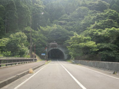 | 釣姫トンネル(2000年・475m)と谷及トンネル(1997年・226m)をくぐり、右カーブの後に須ノ浦トンネル(1995年・425m)をくぐる。釣姫トンネルの旧道は通行可能だが、他の谷汲トンネルと須ノ浦トンネルの旧道は閉鎖もしくは廃道化しており通行できない。 | ||