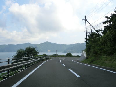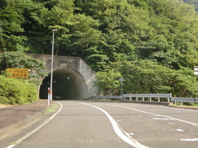 | 海岸線沿いを走っていると志積集落を西から東にかけて回り込むように通り抜けて志積トンネル(1995年・214m)と矢代第一トンネル(1998年・387m)、奈胡崎トンネル(2009年・1027m)をくぐる。矢代“第一”トンネルとなっているからには“第二”トンネルがあってもおかしくないのだが、現地にはそれらしきトンネルはない。かと言って第一トンネルと第二トンネルがロックシェッド等で繋がっていて実質1本のトンネルになっている訳でもない。計画では2本のトンネルを造るつもりが最終的には1本になってしまったのだろうか。矢代第一トンネルと奈胡崎トンネルの間で左手の海側に旧道が走っているが、交差はしておらず車両での往来はできない。徒歩や自転車の場合は車止めの間を通る事で往来可能である。 | ||