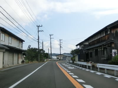 | はす川沿いを少し走ると福井r217鳥浜交差点を直角にカーブしてはす川橋を渡る。若狭広域農道(若狭梅街道)との交差点を通過して鳥浜集落を通り抜けるが、若干道幅が狭く交差点付近では改修工事が行われているところであった。 | ||