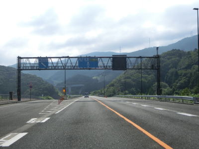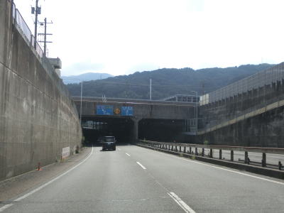 | 若狭美浜ICから片側2車線道路となり、少し走ると福井r118との太田ランプを通過する。r118を南に向かうとJR小浜線の東美浜駅に、北に向かうとR162(実質R27)の旧道の福井r225に行く事ができる。太田ランプの側道が合流してから佐田トンネルをくぐる。 敦賀方面としか接続していないr225との佐田ランプを通過した後に旗護山トンネルをくぐる。佐田トンネル、旗護山トンネルどちらも上下線が別々のトンネルであり4車線化以前は西向き車線のトンネルが対面通行であった。 |