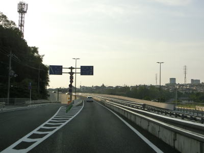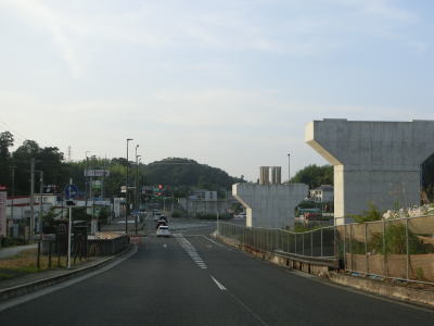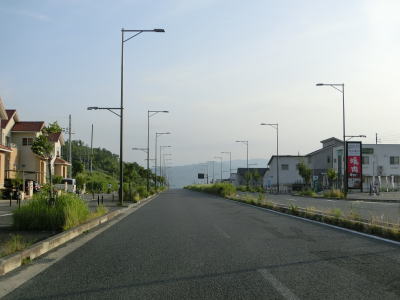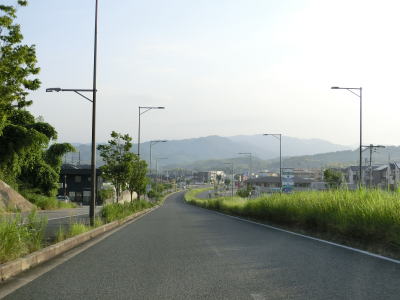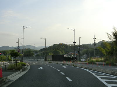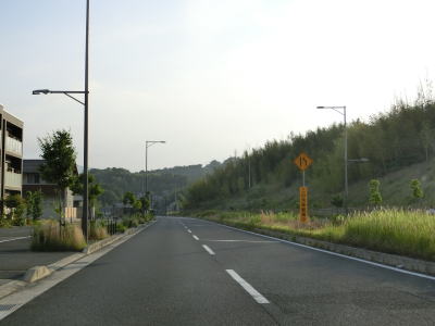 | (仮称)高山ランプの接続予定地点を過ぎると普通の対面2車線道路になる。沿線の建物は少ないが少し離れた所には大規模な造成住宅地がある。鹿畑町西交差点とその前後に旧道が交差しているが、この区間もウォっちずで現役扱いされている。生駒市と奈良市に跨る学研奈良登美ヶ丘駅の近くを通っているが、20mを超える高低差があり高台の上には造成された住宅地が広がっている。 | ||