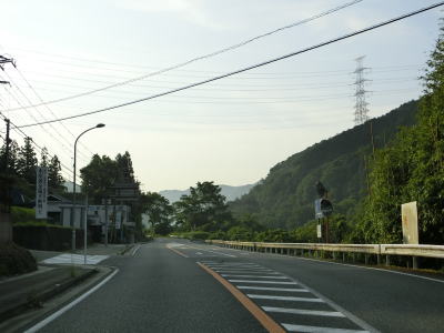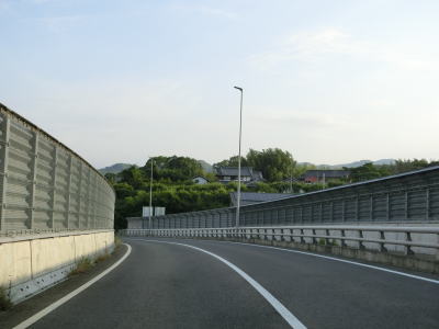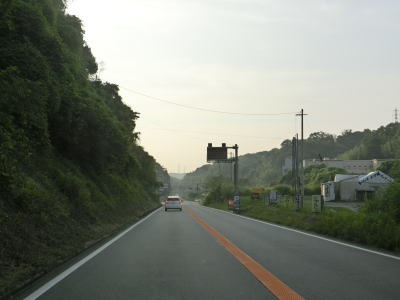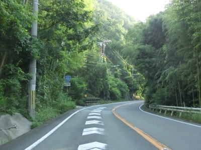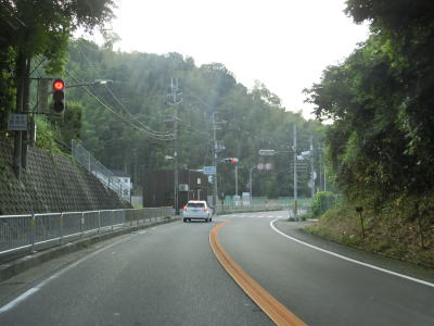 | 学研奈良登美ヶ丘駅に車で行く事ができる市道との鹿畑町交差点を通り過ぎて右カーブを曲がった先で両国橋を渡って京都府精華町に入る。大阪府と奈良県の境と同様に橋が府県境だが、その下を流れる山田川が府県境という訳ではない。 京都府に入ってからは山田川の左岸の山裾を走る。対面2車線道路ではあるがカーブは緩やかで勾配もほとんどないため走りやすい。柘榴集落の中ほどで建設中の橋脚の傍を通るが、おそらく精華拡幅と呼ばれる事業と思われる。 |