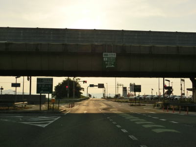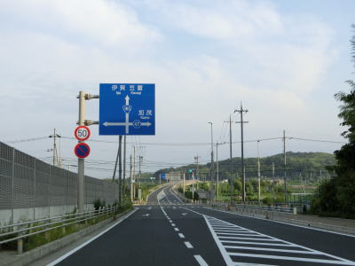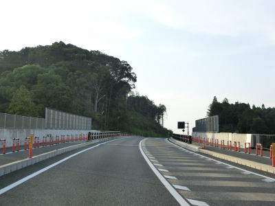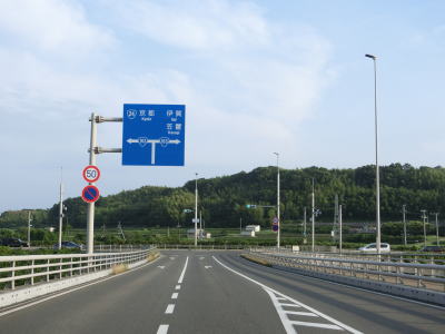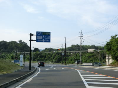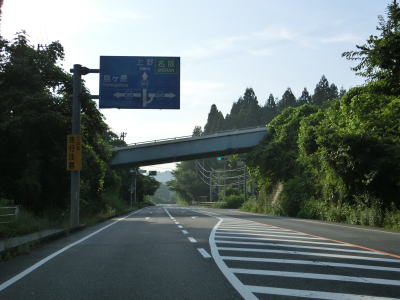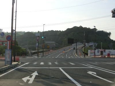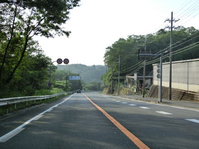 | 今山交差点を過ぎるとやや急な上り勾配が始まり上り切らないうちに県境を越えて三重県伊賀市に入る。山間部のバイパスらしく沿線に建物は殆どない。JR関西本線のトンネルの上を国鉄陸橋で越えると南北が入れ替わり、さらに進むと線路から離れて行く。市道との町交差点を左にカーブしながら通過するが、島ヶ原と案内されている道路は旧道で、地名どころか矢印すら描かれていない右折方向の道路も旧道である。 | ||