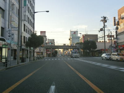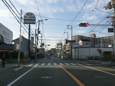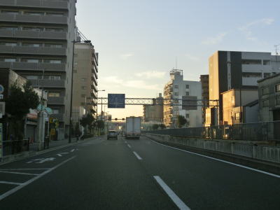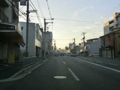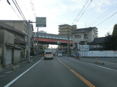 | JR大阪環状線のガードからも4車線道路が続いているが、林寺2交差点では右側車線が右折専用車線になってしまう。交差点の先も4車線道路なので右折専用車線になっているのは解せないが、右折する車両が多いのかもしれない。右にカーブしている所でJR関西本線のガードをくぐり、直後の桑津4東交差点でR25の盲腸線みたいな部分と交差する。天王寺駅南東の大阪r28付属小前交差点までの約1.5kmの盲腸線である。なお大国交差点方面から来た場合はこの桑津4東交差点を右折して盲腸線に入ることはできない。 桑津4東交差点からは片側2車線となるが、道路状況以上に変化するのが交通量である。大型トラックを含む全体的な交通量が急激に増える。これはR25の盲腸線と言えども市道を経由してR43に繋がっており、すなわち神戸方面との幹線ルートにあるためと思われる。 |