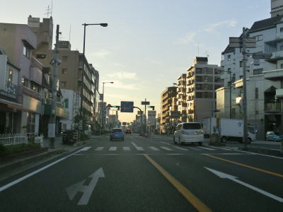 | 大国交差点からは中央分離帯のない4車線道路となって東の方角に進む。南海本線・高野線の今宮戎駅の下を通りが、高架の下は4.40mの桁下制限高規制が敷かれている。緩やかなS字カーブの先では阪神高速14号松原線の高架下を通過する。御堂筋区間に比べて高層ビルは少なくなっているが、交通量の多い区間である事には変わりない。昼間であれば路上駐車車両も多い。 | ||
