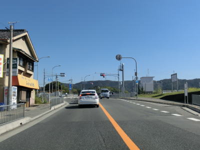 | 48.奈良県香芝市に入る | 49.香芝市側は下り勾配 | 50.幹線道路なので電光掲示板も違和感なし |