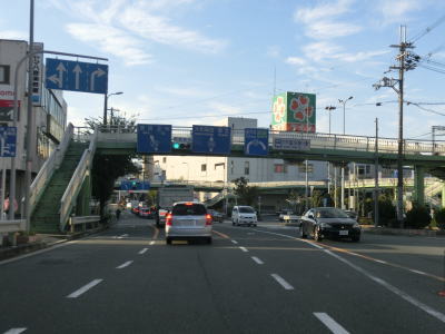 | 13.大国交差点からは4車線 | 14.南海本線・高野線の今宮戎駅の南を通過 | 15.阪神高速14号松原線 |