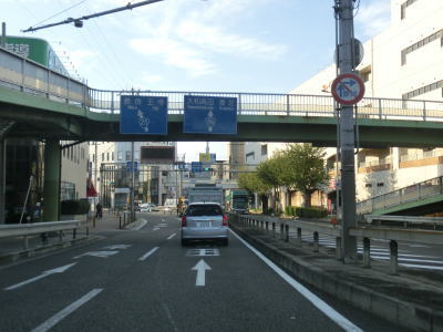 | 大阪府の中心部でもある大阪駅・梅田駅の南に位置する梅田新道交差点がR165の起点である。交差点の北にR176、東にR1・R163、南にR25・R26・R165、西にR2と合計7本もの国道が交差している国道の交差点の重鎮のような交差点である。ただし、案内標識にはR1、R2、R25、R176の4本しか表記されていない。R165はR25とR26に重複しながら南に伸びている。 梅田新道交差点からは南向きの一方通行だが、車線は合計6車線もある。約150m走るとR25・R26・R423梅新南交差点を道なりに進む。R423はR25・R26・R165の南向き一方通行道路に対応する北向き一方通行道路ではない。 |